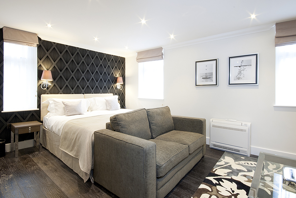 Spacious Studio, located on the Ground and First Floor. The combined Living/sleeping area features premium visual and audio system, air conditioning and King-size bed. A fully fitted Kitchenette includes all appliances and the Bathroom is fitted with bath and power shower.